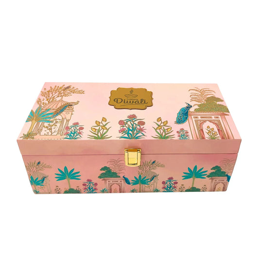 Luxury Pink Peacock Wooden Gift Box β 2 Jar Diwali Dry Fruit & Sweet Hamper