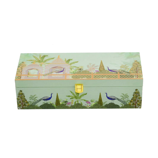Festive Wooden Box for Dry Fruit Gifting With 3 Jar Green Garden Theme