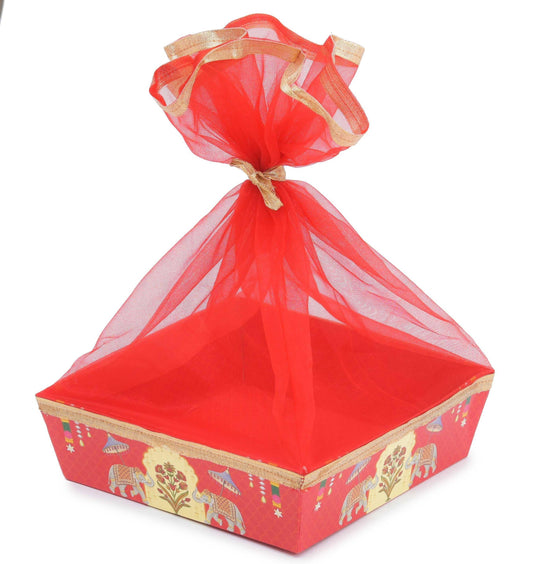 Vibrant Red 6-Compartment Dry Fruit Box | Bold & Festive Gifting