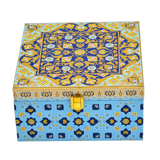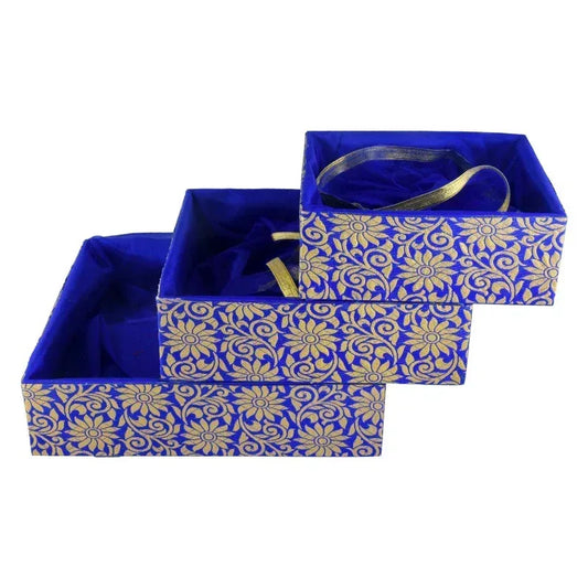 Set of 3 Luxury Wooden Gift Basket for Festive Corporate Hampers -Floral Blue