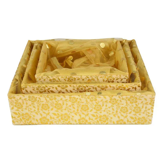 Set of 3 Floral Gold Handcrafted Wooden Basket β Perfect for Corporate Celebrations