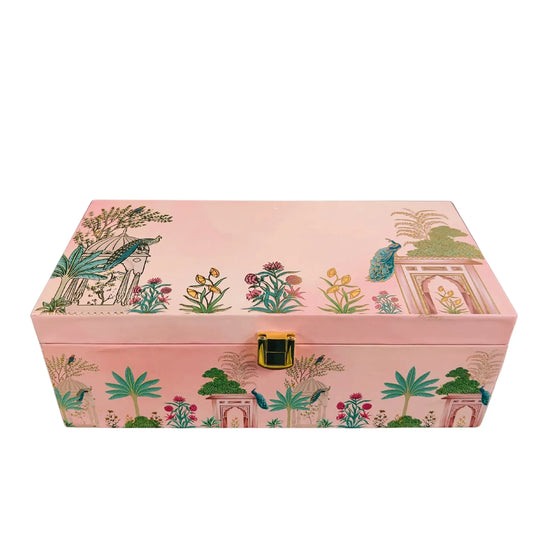 2 Jar Pink Peacock Wooden Box - Dry Fruit
